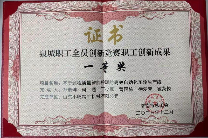 在近日公布的2025年度泉城職工全員創(chuàng)新競(jìng)賽獲獎(jiǎng)名單中,產(chǎn)發(fā)集團(tuán)旗下小鴨精工機(jī)械、金鐘科技集團(tuán)憑借前瞻性的創(chuàng)新理念與實(shí)用價(jià)值,在眾多參賽項(xiàng)目中脫穎而出,分別榮獲一等獎(jiǎng)、三等獎(jiǎng),展現(xiàn)了產(chǎn)發(fā)集團(tuán)在高端智能制造領(lǐng)域的創(chuàng)新實(shí)力。