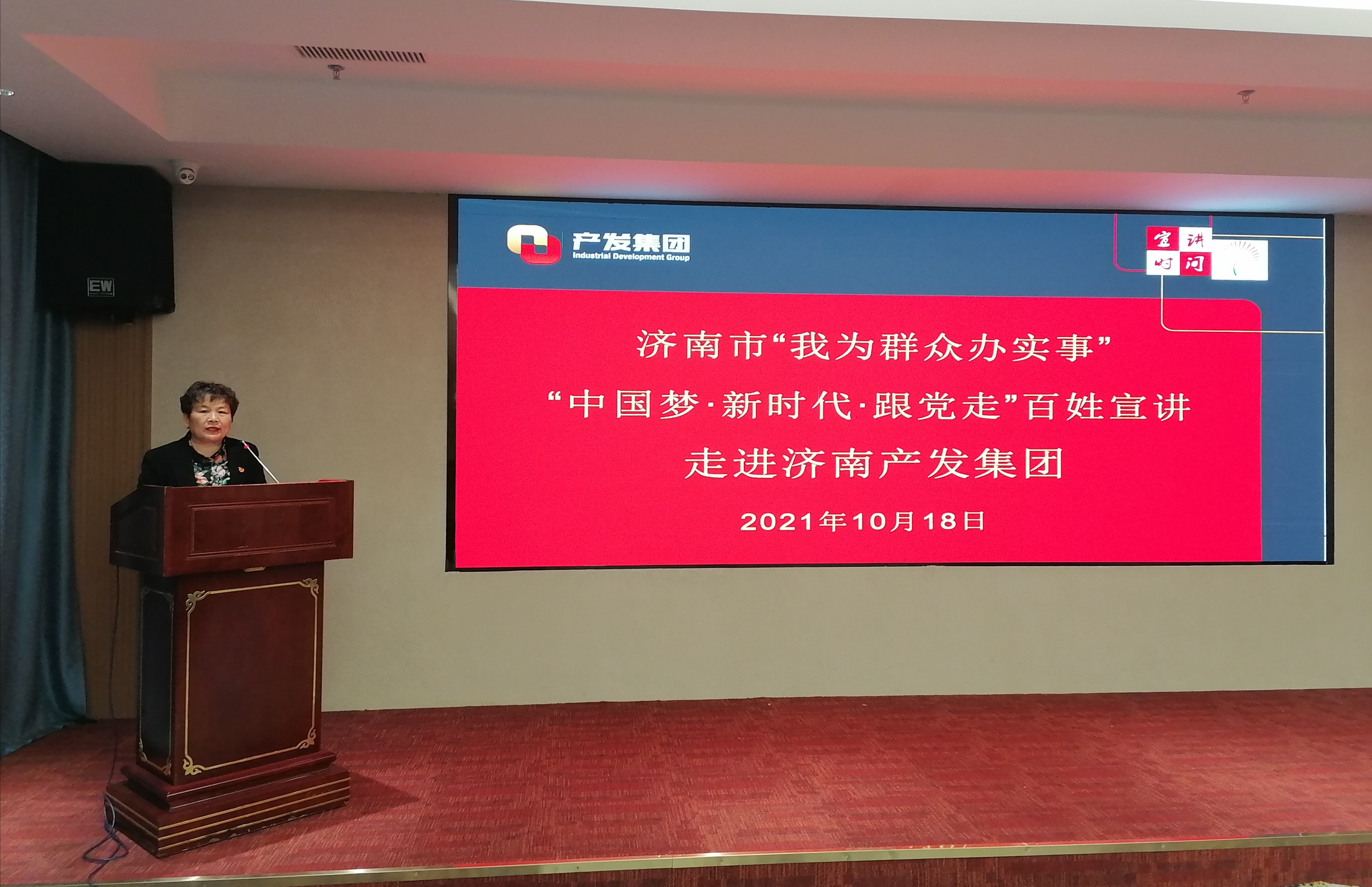 為深入貫徹落實習近平總書記“七一”重要講話精神,扎實推進黨史學習教育“我為群眾辦實事”活動,10月18日下午,濟南市“我為群眾辦實事”“中國夢·新時代·跟黨走”百姓宣講活動走進濟南產發(fā)集團。在市委講師團副處級干部呂桂紅的率領下,“我為群眾辦實事”百姓宣講團的6位宣講員用他們的親歷、親聞、親為,為產發(fā)集團50余名參會干部職工講述“聽黨話、跟黨走、率先垂范、主動擔當、無私奉獻”的動人故事。